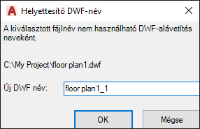 A DWF- vagy DWFx-referenciák nevének egyedinek kell lennie. Megpróbál csatolni két olyan DWF- vagy DWFx-referenciát, amelyek a Helyettesítő DWF-név párbeszédpanelen azonos névvel jelennek meg.