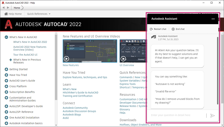 The Autodesk Assistant is integrated into AutoCAD Help.