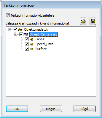 - A Térképi információ párbeszédpanelen jelölje be a Térképi információ közzététele jelölőnégyzetet.
