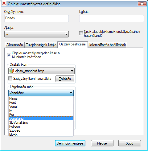 Az osztályhoz hozzáadott összes létező objektumnak az itt bejelölt objektumtípust kell használnia. Hacsak nem tudja biztosan, hogy az összes útobjektum az AcDbLine vagy az AcDbCurve módszerrel lett létrehozva, akkor csak az AcDbEntity mezőt jelölje be.