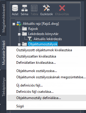 2. A Feladatok lap Munkatér Intéző lapján kattintson a jobb gombbal az Objektumosztályok elemre, majd kattintson a Definíciós fájl csatolása gombra.