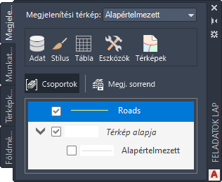 - A Megjelenítéskezelőben válassza ki az 'Utak' elnevezésű fóliát, majd a menü részében kattintson a Stílus gombra.