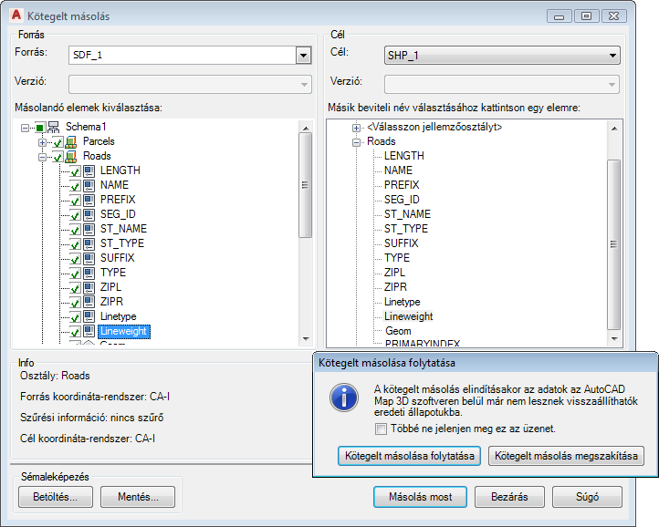 A Kötegelt másolás paranccsal konvertálhat adatokat térinformatikai formátumból más formátumba.