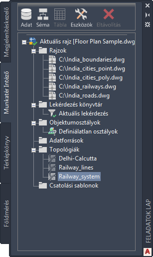 A Munkatér Intéző lehetővé teszi az aktuális térképen felhasznált adatforrások kezelését.