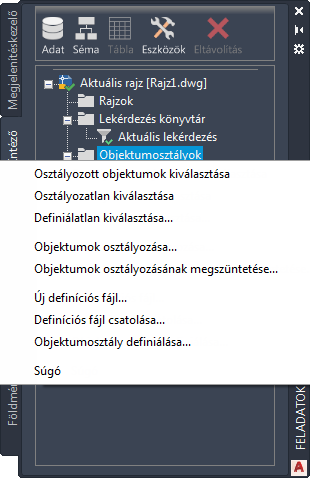 A Feladatok lapMunkatér Intéző lapján hozza létre az objektumosztály -definíciós fájlt. Bármely térképen létrehozhatja ezt a fájlt.