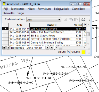 Ha attribútumadatokat kíván csatolni rajzi objektumokhoz, csatolja az adatbázist az aktuális térképhez. Ezután egy csatolási sablonnal csatolja az adatokat az objektumokhoz.