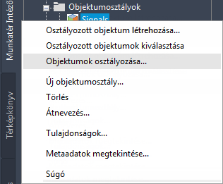 Kattintson a jobb gombbal a Jelek objektumosztályra a Munkatér Intézőben a Feladatok lapon, majd kattintson az Objektumok osztályozása lehetőségre.