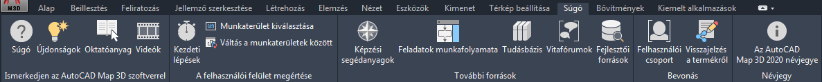 - Oktatóanyagok: Útmutató lépésről-lépésre az AutoCAD Map 3D eszközkészlet szoftver megismeréséhez. Néhány útmutató videoanyagokat és interaktív lehetőségeket kínál a termék megismeréséhez.