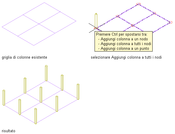 | Aggiungere una colonna in corrispondenza di un determinato nodo della griglia | Spostare il cursore sul nodo o in prossimità del nodo e fare clic. Viene aggiunta una colonna al nodo più vicino alla posizione del cursore. |