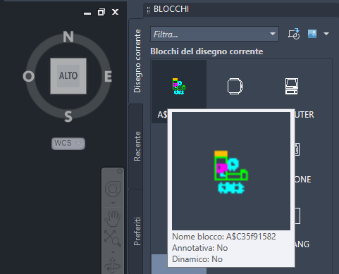 Come procedura ottimale, è possibile utilizzare il comando RINOMINA per assegnare un nome significativo al blocco. È inoltre possibile utilizzare il comando MODIFBLOC per regolare il punto base e modificare altre proprietà del blocco.