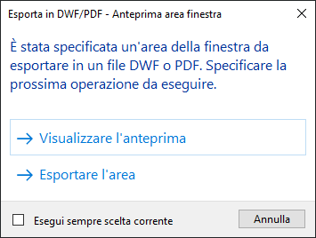 5. Nella finestra di messaggio Esporta in DWF/PDF - Anteprima area finestra, fare clic su Visualizzare l'anteprima.