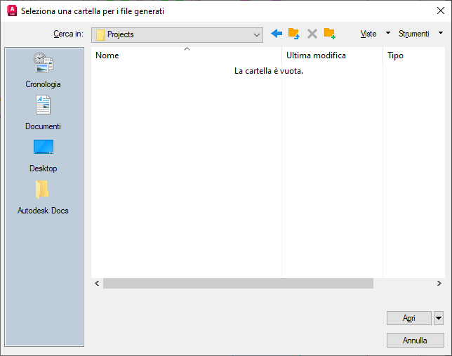 • Posizione: imposta la cartella in cui vengono salvati i file esportati quando si pubblicano i disegni. Sono disponibili tre opzioni: nella stessa cartella del disegno, in una sottocartella della cartella del disegno e nella cartella selezionata. Una volta selezionata, una cartella viene memorizzata in un elenco di posizioni recenti.