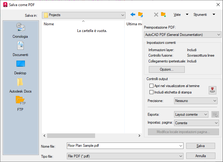 Per fortuna, tutto questo è possibile. AutoCAD include due funzionalità che consentono di creare rapidamente file PDF (o DWF).