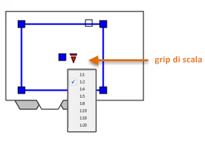 Selezionare la finestra di layout desiderata, fare clic sul grip di scala e selezionare una scala dall'elenco.