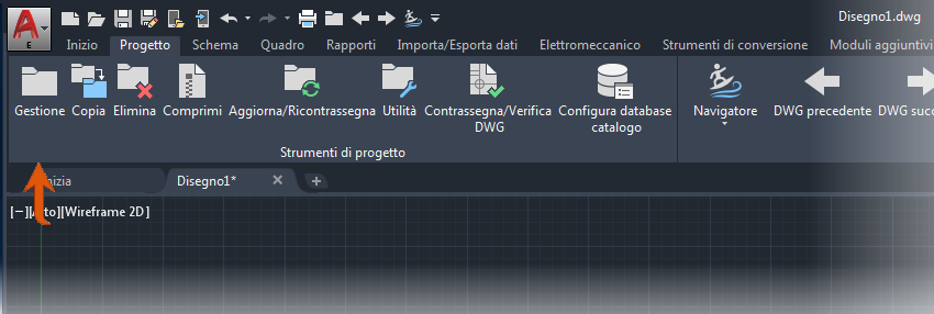 Gestione progetti è lo strumento fornito per lavorare con i progetti e i disegni inclusi in un progetto. Trova