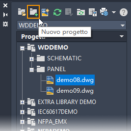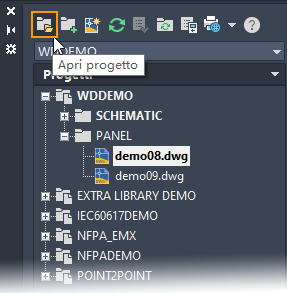 Set di strumenti AutoCAD Electrical è basato sui progetti. Per progetto si intende un gruppo di disegni correlati. Tutte le informazioni relative ad un progetto, inclusi i disegni contenuti nel progetto, vengono salvate in un file di progetto con estensione .wdp.