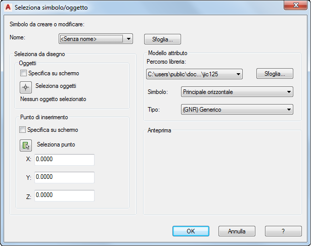 Le informazioni del catalogo vengono posizionate sul simbolo automaticamente. È possibile modificare ulteriormente il simbolo utilizzando la finestra di dialogo visualizzata all'inserimento di un simbolo.