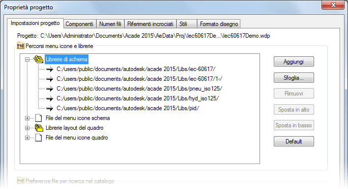 Utilizzare la scheda Impostazioni progetto della finestra di dialogo Proprietà progetto per definire il percorso della serie di simboli di libreria che si desidera utilizzare in un determinato progetto.