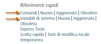 Premere F1 per aprire la Guida in linea. Nella pagina iniziale della Guida in linea, fare clic su Comandi o Variabili di sistema.