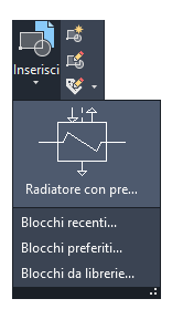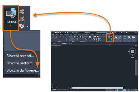 - Fare clic su Inserisci nella scheda Inizio e fare clic su Blocchi da librerie. In questo modo si avvia il comando TAVOLOZZABLOCCHI.