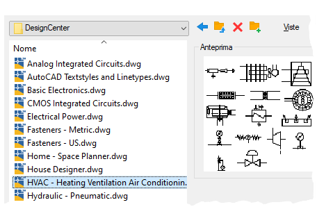 Ad esempio, si supponga di creare disegni per riscaldamento, ventilazione e condizionamento aria. Selezionare il disegno HVAC, quindi fare clic su Apri.