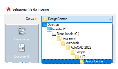 Nota: È inoltre possibile passare direttamente ad un file di disegno da inserire come blocco.