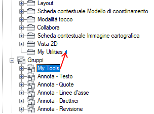 Utilizzare l'indicatore visivo per specificare la posizione del gruppo della barra multifunzione nella scheda della barra multifunzione.