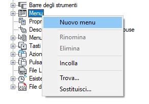 Nella scheda Personalizza, nel riquadro Personalizzazioni in <nome file>, fare clic sul segno più (+) accanto al nodo Menu per espanderlo.