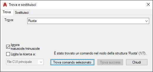 Viene visualizzato un messaggio con i dettagli della posizione del comando, la posizione esatta del comando nel riquadro Personalizzazioni in o nel riquadro Proprietà e il numero di istanze del comando.