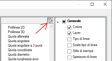 Se un tipo di oggetto è selezionato, le relative proprietà vengono visualizzate nella tavolozza Proprietà rapide quando viene selezionato un oggetto dello stesso tipo e quando QPMODE è impostata su 2 e PICKFIRST è attivata. Eliminare il segno di spunta accanto ad un tipo di oggetto per rimuovere il tipo di oggetto selezionato dalla tavolozza Proprietà rapide.