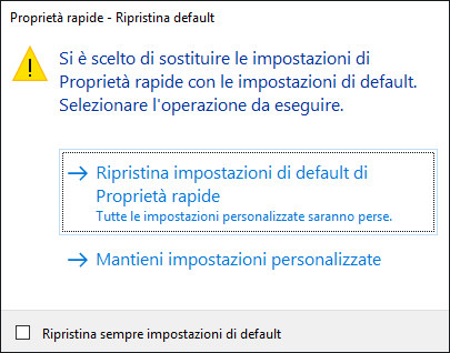 - Fare clic su Ripristina le impostazioni di default di Proprietà rapide.
