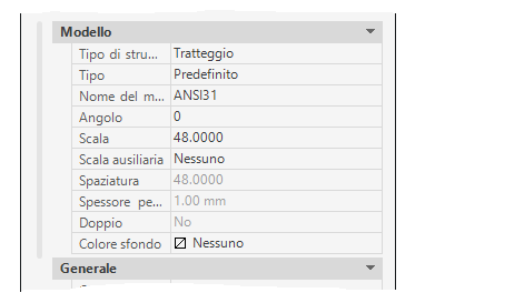 Il nuovo oggetto tratteggio comprende tutte le impostazioni delle proprietà del tratteggio originale.