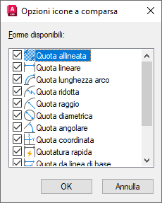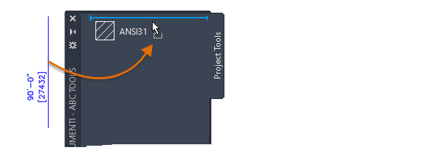 Tenere premuto il pulsante destro del mouse e trascinare l'oggetto di quotatura sulla tavolozza degli strumenti.