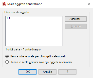 Aggiunge o elimina le scale supportate per l'oggetto annotativo selezionato.