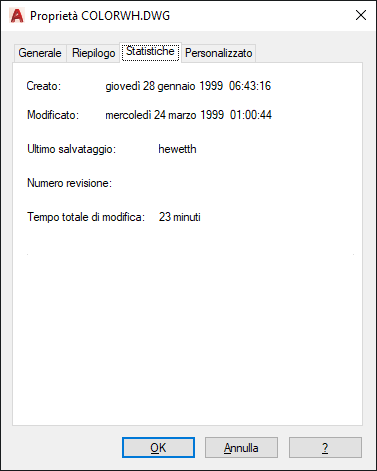 Queste proprietà del file sono utili per cercare disegni creati o modificati durante un determinato periodo di tempo.