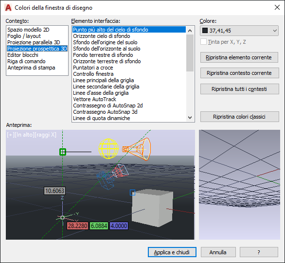 OPZIONI (comando) Trova: scheda Visualizzazione > Colori