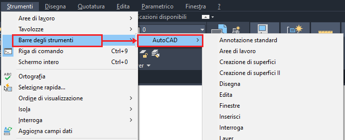 e selezionare la barra degli strumenti richiesta.