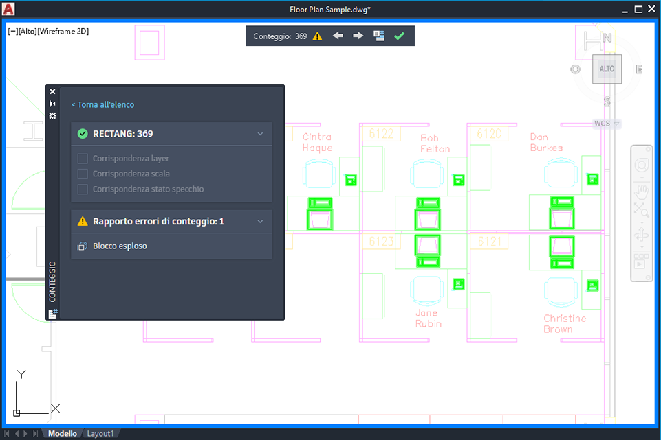 Nota: Nella tavolozza Conteggio vengono visualizzati solo i blocchi visibili nello spazio modello.