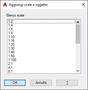 Visualizza l'elenco delle scale che possono essere aggiunte all'oggetto annotativo selezionato.