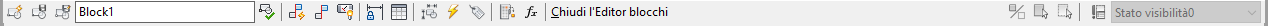 La barra degli strumenti Editor blocchi viene visualizzata quando la barra multifunzione non è attiva. Inoltre viene visualizzata solo quando si accede all'Editor blocchi con la barra multifunzione chiusa.