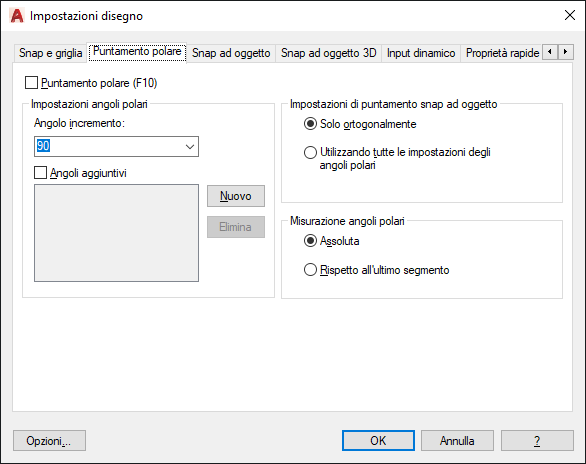 Limita il movimento del cursore agli angoli polari specificati. (Variabile di sistema AUTOSNAP)