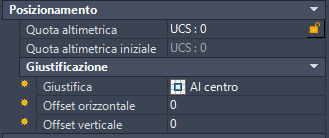 Nel riquadro proprietà sono disponibili le seguenti impostazioni di giustificazione: