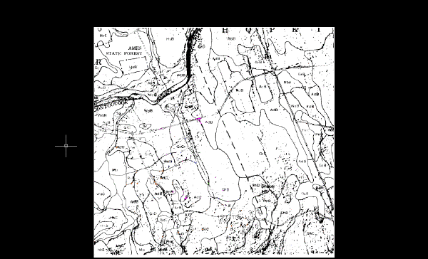 Dopo aver convertito l'immagine in scala di grigi in immagine bitonale (bianco e nero), invertito l'immagine e rimosso le imperfezioni, risulta più facile identificare i confini del suolo. La carta risultante può quindi essere immediatamente convertita in vettore mediante gli strumenti di vettorizzazione del Set di strumenti AutoCAD Raster Design.