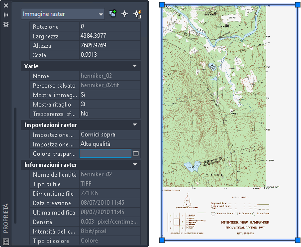 Prima di svolgere questo esercizio, accertarsi che le opzioni del Set di strumenti AutoCAD Raster Design siano impostate come descritto in Esercizio A1: impostazione delle opzioni del Set di strumenti AutoCAD Raster Design.