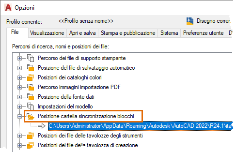 BLOCKSRECENTFOLDER: imposta il percorso in cui vengono memorizzati i blocchi inseriti o creati di recente.