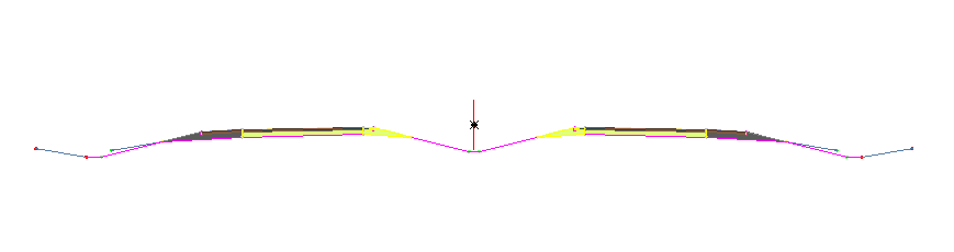 La sezione tipo raffigurata nella figura 2 ha una linea base al centro di un fosso tra due sezioni stradali. Questa sezione tipo può essere utilizzata per un modellatore progettato simmetricamente lungo una singola linea base centrale. Tuttavia, se si progetta una sezione di modellatore dalla linea di flusso della cunetta o un'altra linea esterna, in genere è preferibile posizionare la linea base in quella posizione. La procedura ottimale consiste nell'impostare la linea base lungo il tracciato principale che controlla la posizione del modellatore.