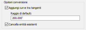 Se si sta creando un tracciato da una polilinea, il metodo deve essere adattato alla natura della polilinea. La finestra di dialogo per la creazione di un tracciato tramite questa modalità include una casella di controllo relativa all'opzione Aggiungi curve tra tangenti, illustrata nella figura 1.