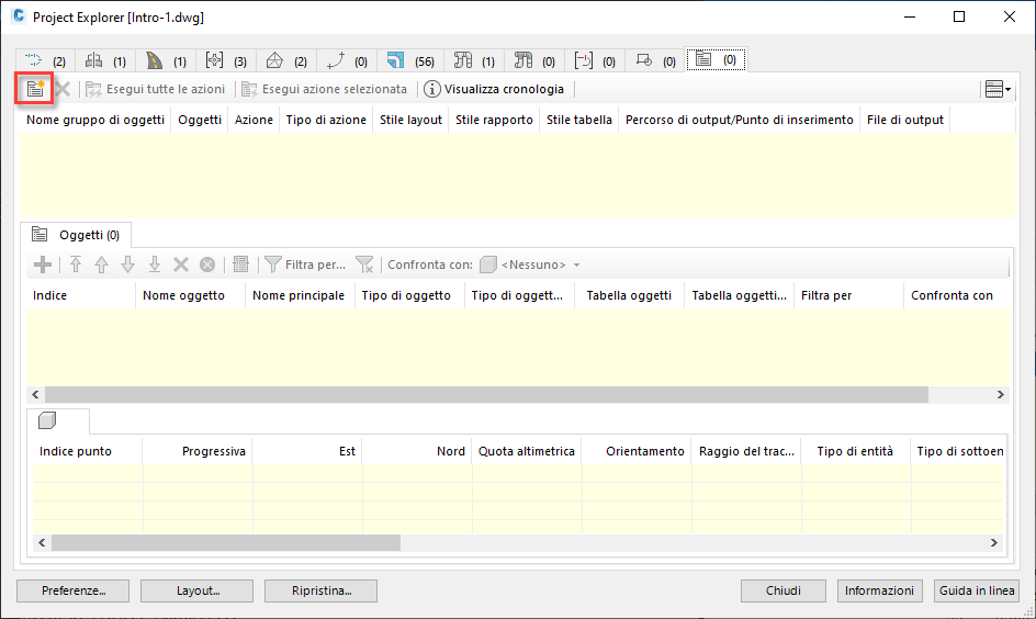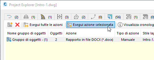 Dopo aver configurato correttamente due gruppi di oggetti nella Carta, è possibile rigenerare entrambi i rapporti in qualsiasi momento selezionando semplicemente Esegui tutte le azioni nella finestra Project Explorer.