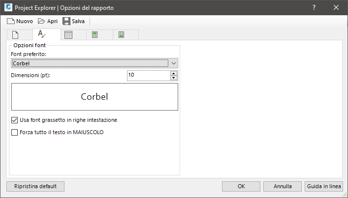 Nella scheda Opzioni font, impostare il font preferito su Corbel e la dimensione font su 10pt.