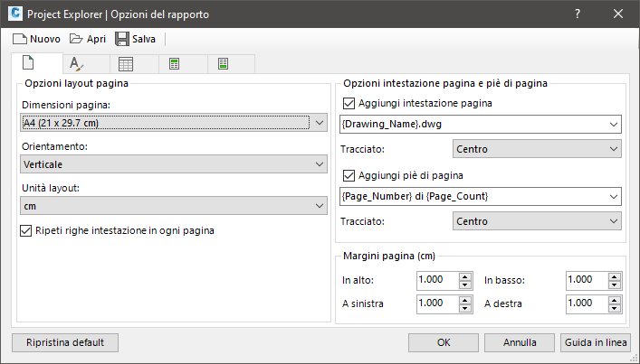 A seguire, verrà impostato uno Stile rapporto per determinare la formattazione pagina, i font, lo stile tabella e il contenuto intestazione/piè di pagina del rapporto in uscita.